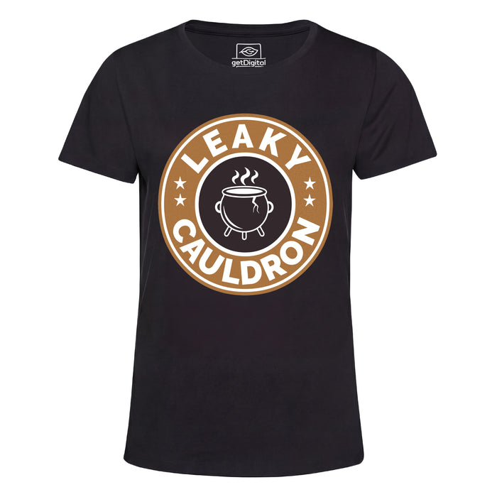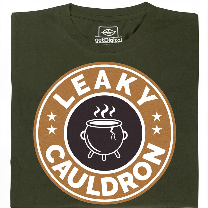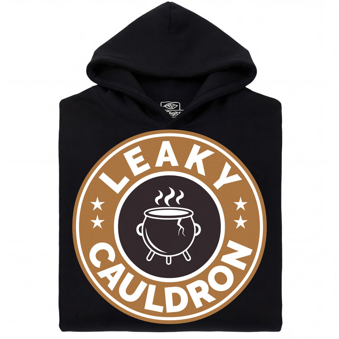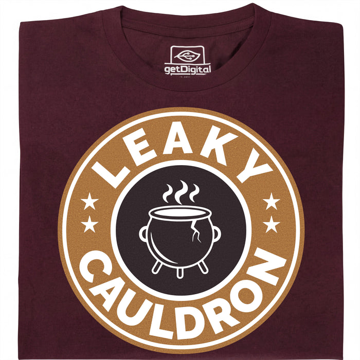 Das Leaky Cauldron ist der erste Anlaufpunkt für alle, die aus der Muggelwelt in die Zaubererwelt eintauchen. Versteckt in der Charing Cross Road wartet dort ein rissiger Kessel auf seine Gäste - und genau dieser legendäre Topf ziert dieses Design im unverkennbaren Coffeeshop-Badge-Stil. Wer hinschaut, erkennt sofort den Riss im Kessel. Leaky eben. ;)