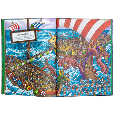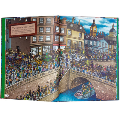 • Wimmelbuch mit Bildern verschiedener Epochen, in denen Doctor Who auftaucht, zum Suchen und Entdecken