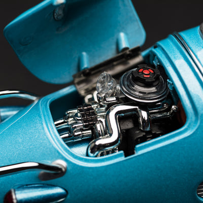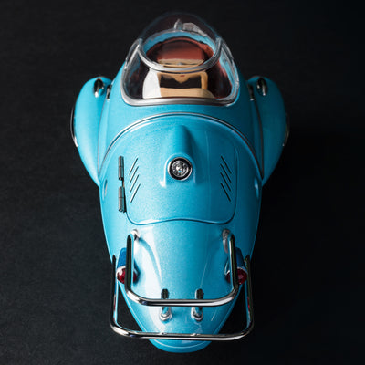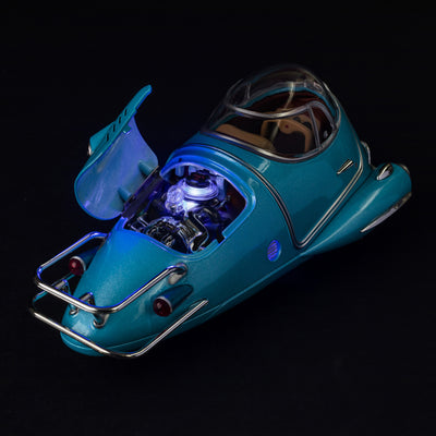 Dieses Paradebeispiel amerikanischer Ingenieurskunst besteht aus Metall und basiert auf dem originalen Fusion Flea. Verchromte Einzelteile, hochwertiger Metalllack und ein beleuchteter Nuklearmotor, der sich entfernen lässt und im Dunkeln nachleuchtet - mit diesem Modell können Sie wahrhaftig in die nukleare Zukunft rollen!