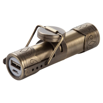 Die Powerbank im Steampunk-Design ermöglicht es Dir, auf der nächsten Con moderne Geräte wie Smartphones aufzuladen, ohne Deine Gewandung direkt zu ruinieren. In dem stabilen Metallgehäuse, das mit einem Deckel verschlossen werden kann, verbirgt sich eine 3000 mAh-Batterie, die Du mit dem enthaltenen 3-Wege Kabel (passend für micro-USB, Lightning und USB-C) and Deine Geräte anschließen kannst.