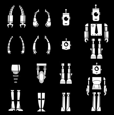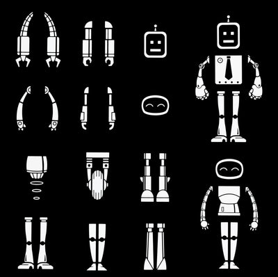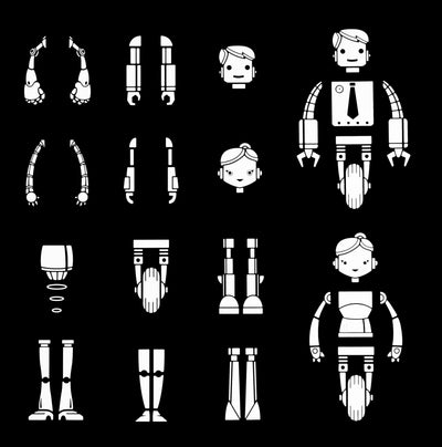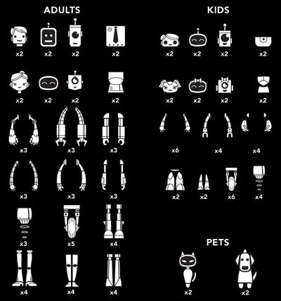 Aus insgesamt 50 'mix and match' Einzelteilen kannst Du Dir Deine Familienmitglieder nach Deinen Wünschen zusammenkleben - die Kombinationsmöglichkeiten sind fast unendlich und es sind genügend Teile vorhanden, um sowohl die 1. also auch die 2. Familie komplett abzubilden - wesentlich sympathischer und geekiger als jedes "Bill an Bord" Warnschild.