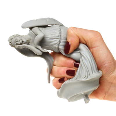 At least that's how the stone angels proceed, who meet the Doctor for the first time in the episode Blink. Besides, they can get pretty fast! Who would have thought that stone is so lively. Almost the same phenomenon can be observed with the Weeping Angel Stress Toy, because although it looks like a small sculpture, you can knead the angel really nicely in your fist. ;) The stress toy helps you not to lose your temper, but the angel quickly shows its true and quite frightening face when treated in this manner. Ready to transport you to the afterlife or the past.