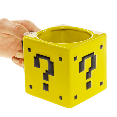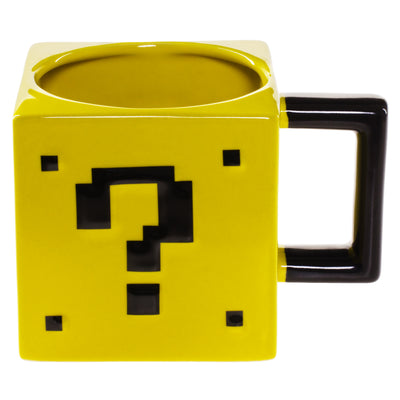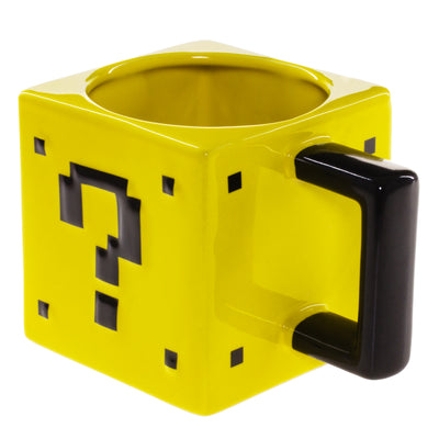 Just like its arcade counterpart, this question mark block is cube-shaped all around, and even the handle is nicely angular. The question marks are slightly raised. To make sure you can drink well from it, the opening is round.