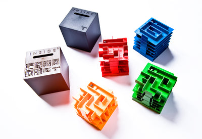 The versions in blue or crystal (easy, crystal is transparent) and green (regular) are intended for cube beginners. After that, the orange (Mean) cube and the red (Awful) cube are much more difficult. However, if you lose your ball in these four mazes, you can simply open the cubes and take them apart to start again.