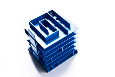 Depending on the level of difficulty, a plan of the seven levels of the respective labyrinth is stamped in. There are more and less difficult passages, such as dead ends, sudden drops and slopes. In addition to spatial thinking and a little sense of direction, your sensory perception is also required; the ball can be heard and felt when it bounces against a wall, for example.