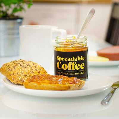 With the coffee spread, you come a step closer to your dream: This jar contains a divine mix of fresh oranges and high-quality espresso. Finally, you can spread coffee on your bread, refine your coffee with a spoonful of espresso jam, or give muffins and other pastries that certain something. You don't have to worry about mixed consumption with liquid coffee giving you a bit too much energy, as the coffee spread only shares the taste, not the caffeine.