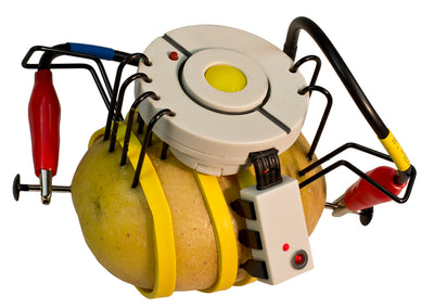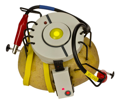 If you missed the children's exhibitions at the Apperture Science Labs science fair, we've got something for you. You can almost recreate Chell's project, except that your potato doesn't actually generate electricity, but becomes a PotatOS (thanks to hidden batteries). Your own PotatOS will look as if it is powered by potato electricity, but it will need a bit more power to realize the light and sound effects. But in the end, you'll still feel like you're back in the good old days: GLaDOS will insult you again and you can carry it around ;)