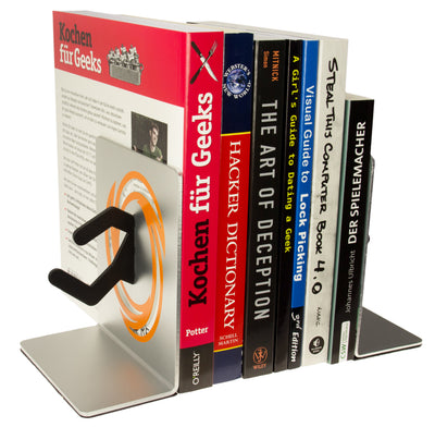 Position the bookend with the orange portal on the left side of a row of books and the bookend with the blue portal on the right side. The effect is as follows: Your books (or DVDs, games, cassettes...) will stand upright on the shelf. At least, that's how it should be. If not, you might be doing something wrong. Additionally, it looks as if a test subject would port through the books. This might actually happen, depending on how much the conditions in your room resemble those at Aperture Science. However, we hope for your sake that you have it better.