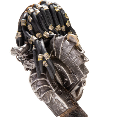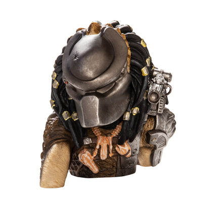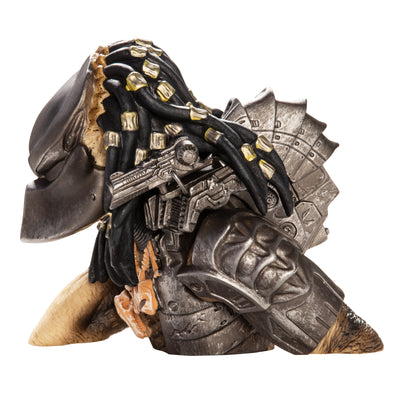 The detailed bust shows the Predator in all its eerie glory - complete with shoulder cannon and mask. You can fill the piggy bank with money through a slot on the back, and the Predator can be emptied through an opening on the bottom sealed with a lid. We would like to point out that the piggy bank is not effective against Austrian musclemen covered in mud. ;)
