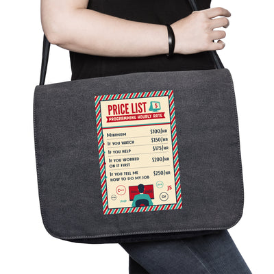 If someone wants to tell you how to work next time, just point to the “Programmer Price List” T-shirt. The depicted list clearly shows how your hourly rate changes in response to certain disruptions. Someone constantly looking over your shoulder? 50 dollars extra! The person has already messed up the project? 100 dollars extra! Once you strictly enforce this list, no one will dare to interfere with you, and you can fully concentrate on your job! :)