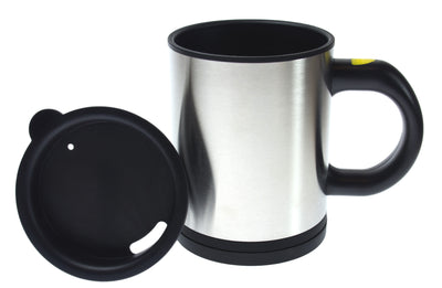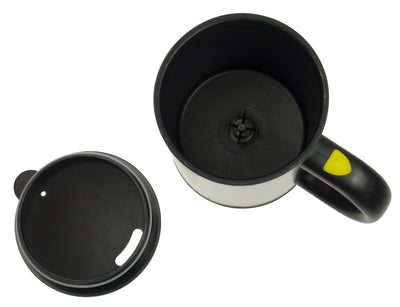 By the way: In the Self-stirring Mug, your coffee or cocoa also stays hot for a very long time, as it comes with a thermal lid. Thanks to a rubber ring on the edge of the lid, the mug is well sealed, and the lid does not fall off. However, you can still access your coffee: there is a drinking opening and an air hole.