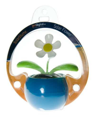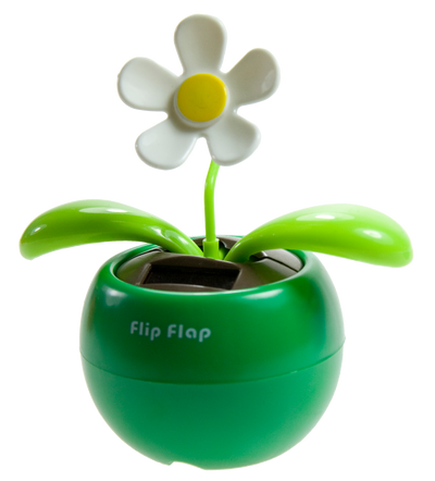 The solar flower is 12 cm high and measures 10 cm from leaf tip to leaf tip. It has a switch at the bottom of the pot to turn off the movement function.
