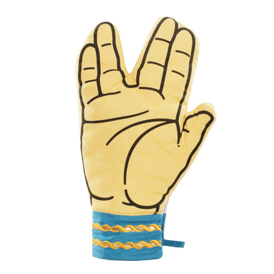 Besides his coolly logical but somehow warm demeanor, it is probably the Vulcan salute that has become a symbol for Star Trek. And with the Star Trek Spock Oven Mitt, you can not only show your connection to your favorite franchise but also give your cake, casserole, bread, or rolls a friendly intergalactic greeting.