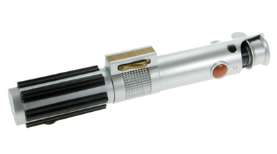 This flashlight not only looks like the hilt of Anakin Skywalker's lightsaber, but it also emits almost the same sounds: When turning it on and off, the typical and well-known lightsaber sound can be heard. Additionally, the beam of the flashlight is blue. The hilt itself is also largely modeled after the original hilt from the Star Wars movies.