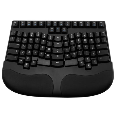 This keyboard has just as many keys as a conventional keyboard in 60% less space - without shrinking the keys significantly. The narrower arrangement ensures that you have a better posture and can place your arms closer together. The distance you have to travel to reach for the mouse is also shortened as a result. The padded ball rest offers additional comfort during breaks.