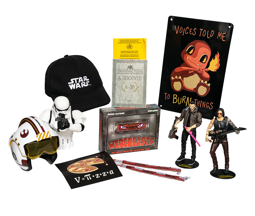 The loot box is a surprise box full of nerdy items. Every month there is a new box with new themes, ensuring a good variety. The currently orderable box contains these themes: