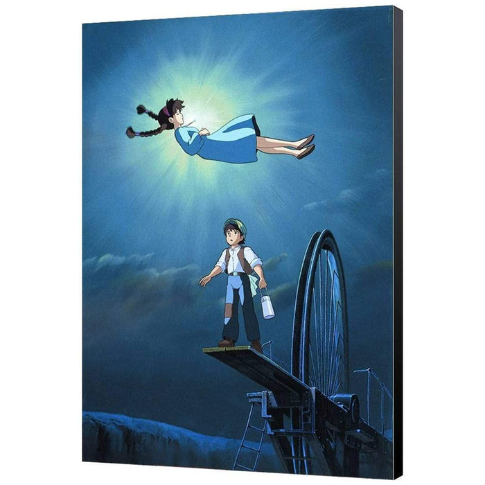 The wild story of Studio Ghibli's film "The Castle in the Sky" begins with the magical encounter between Sheeta, the mysterious girl with the magical amulet, and Pazu, the kind-hearted worker. However, it is not only the two characters who meet here, but also the two seemingly irreconcilable themes of the film: Sheeta, who falls from the sky, brings magic and fantasy into the life of the technology-loving miner Pazu. The result is a critically acclaimed classic somewhere between a children's fairy tale and a steampunk adventure. And a beautiful movie poster that is also available as a robust Ghibli The Castle in the Sky wooden wall mural.