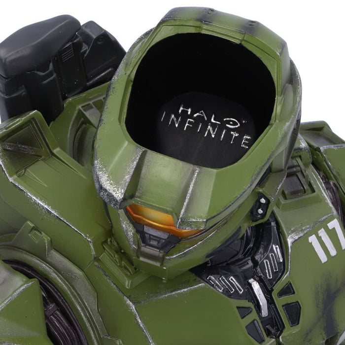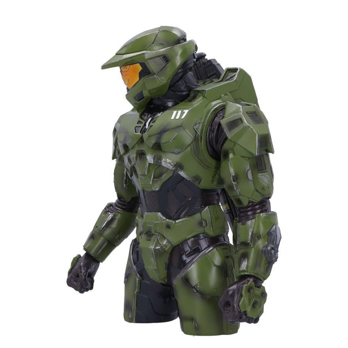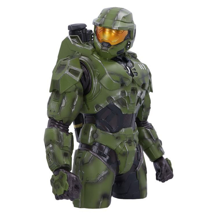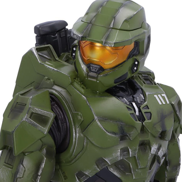 Für die Menschen in der Welt von Halo und auch die Spieler des Games ist er auf jeden Fall eine Legende. Und solchen Menschen werden Statuen gewidmet. Mit ihren 30 cm ist die Halo Infinite Master Chief Büste vielleicht etwas kleiner als gewöhnliche Statuen, dafür passt sie besser in dein Zuhause, als ein 2,18 m großer aus Stein gemeißelter Spartaner. Durch das handbemalte Kunstharz, aus dem sie gefertigt ist, sieht sie in der ikonischen Rüstung beinahe lebensecht aus.