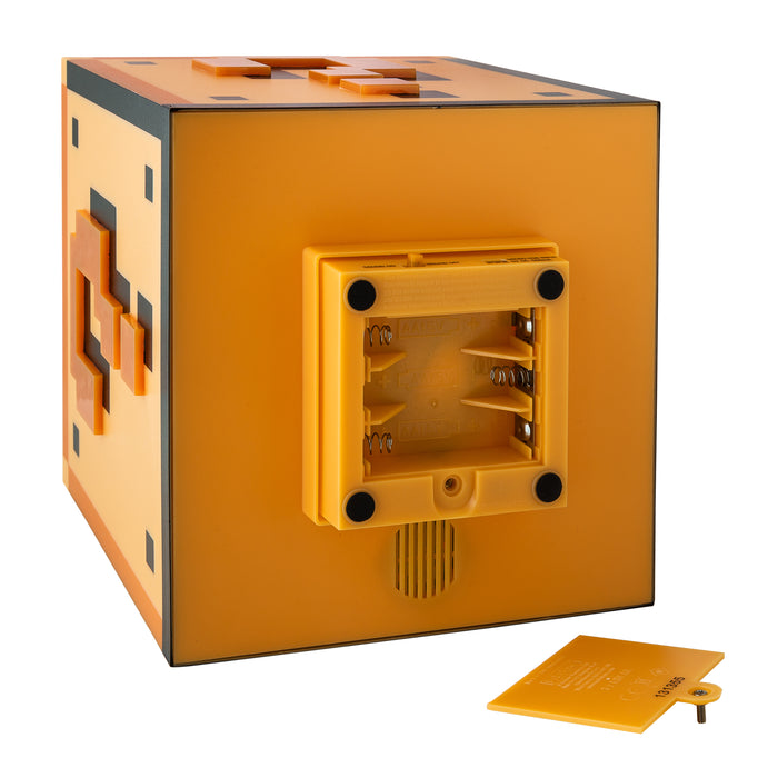 Mit dem Nintendo Super Mario Fragezeichenblock Licht kannst Du eines der bekanntesten Elemente aus dem Jump 'n' Run direkt in Deine Wohnung holen. Anders als bei ihrem digitalen Vorbild musst Du nicht von unten gegen die Lampe springen, um sie anzuschalten, ein einfaches Drücken auf die Oberseite der Box genügt. Beim Ein- und Ausschalten ertönt zudem das bekannte Signal aus dem Spiel für das letzte Quäntchen an Nostalgie. Die Stromversorgung der im charmanten Pixellook gehaltenen Lampe erfolgt wahlweise über das beigefügte Micro-USB-Kabel oder 3 AA Batterien (nicht enthalten). Eine Wandmontage ist nicht vorgesehen.
