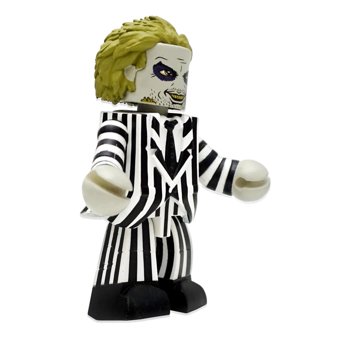 • Vinimates-Sammelfigur in eckigem Design, die dem Charakter Beetlejuice nachempfunden ist
