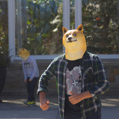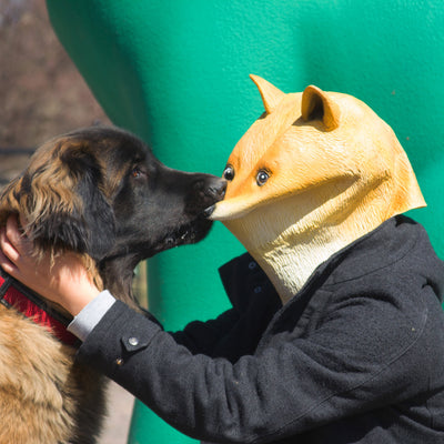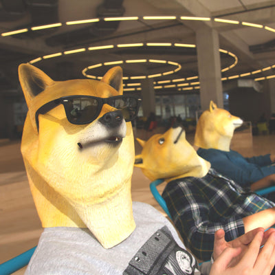 • Máscara de plástico de un perro shiba;