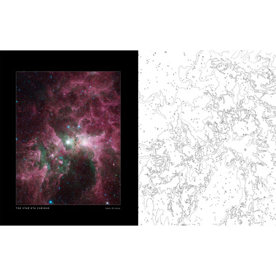 No importa cuánto nos esforcemos los humanos: ¡Las obras de arte más hermosas siempre las crea la naturaleza! Esto es cierto tanto en la Tierra como en el espacio. Con el libro para colorear „Earth + Space“ puedes dejar tu huella en las vastas extensiones del universo y dar nueva vida a más de 35 imágenes de planetas, galaxias y más con nuevos colores. En cada página doble encontrarás, además de la imagen para colorear, una foto del objeto correspondiente del archivo de la NASA, que puede servirte de inspiración, aunque por supuesto puedes pintar la Tierra de morado, la Luna de rojo y la Vía Láctea a cuadros verdes. ;)