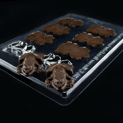 Contenido: forma de chocolate para 8 ranas, instrucciones (inglés), 8 arcos artesanales