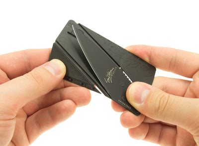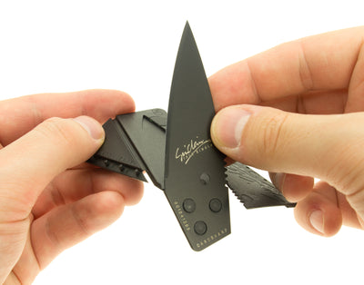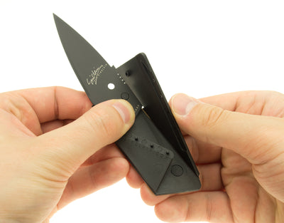 El Cuchillo de tarjeta de crédito cartharp Tiene exactamente el tamaño de una tarjeta de crédito y, por lo tanto, se ajusta perfectamente a su billetera para que siempre pueda llevarla consigo sin que ocupe innecesariamente mucho espacio como la navaja suiza convencional. Solo requiere 3 pliegues simples y mantiene un cuchillo completamente funcional y duradero en su mano en cuestión de segundos en lugar de la tarjeta que no es más que su licencia de conducir, sino que afirma y extremadamente estable.