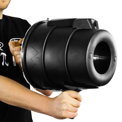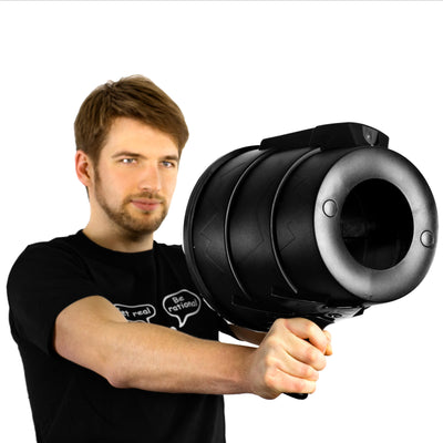 La estructura de Airzooka es muy simple: es una gran tubería cónica con una película y una banda de goma, el gatillo, en el extremo más ancho. Todo lo que tiene que hacer es ajustar la deducción, dejarlo ir rápidamente y ya ha creado un aire capital.