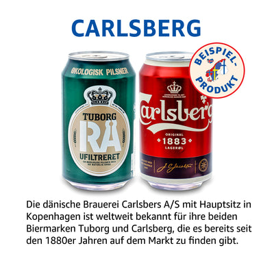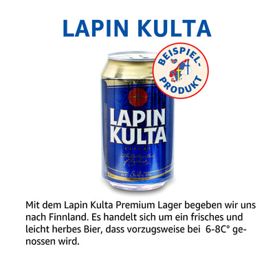 Puedes encontrar en esta caja 12 tipos diferentes de cerveza compilados al azar de varios países escandinavos y Finlandia, incluidos Carlsberg, Tuborg o cervezas de exportación sueca. Dado que seleccionamos aleatoriamente las variedades para los cuadros, Puede variar la compilación.