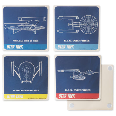 El Montaña de cerámica "Star Trek Tos" Mostrar dos de las naves espaciales más famosas que han hecho inseguros los lienzos y televisores del mundo: el USS Enterprise (NCC-1701) y el romulano Ave de rapiña. Los dos barcos se pueden ver desde dos perspectivas en las robustas montañas rusas de cerámica, que no solo disparan exorbitantemente el nivel de Trekkie de cada apartamento, sino que también protegen las Tablas y Co. Los bordes ornamentales coloreados se basan en los colores uniformes de la empresa. ¿Alguien querrá tomar voluntariamente la montaña rusa?