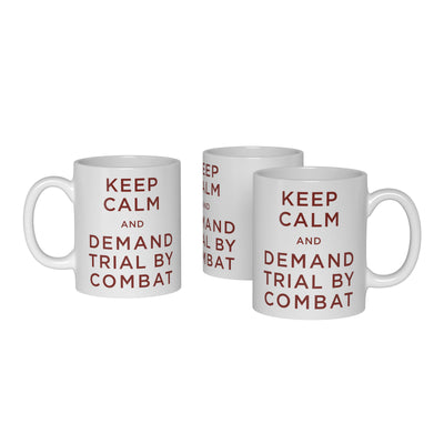 Si alguna vez te encuentras en una situación así, no deberías ensuciarte las manos, sino enviar a uno de tus secuaces como representante en la lucha. Lo mejor es elegir a alguien que no se preocupe por las reglas y el honor y que termine rápidamente con su oponente. Mientras tanto, tú te quedas al margen y disfrutas bebiendo vino de tu "Trial by Combat"-taza. Suena a un plan sólido, ¿verdad? En agradecimiento por nuestros consejos, nos debes un favor. Y hemos oído que siempre pagas tus deudas...