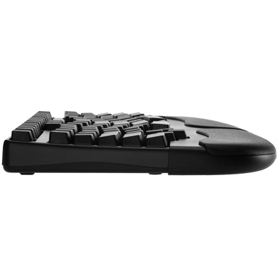 En este teclado hay tantos botones para un 60% menos de espacio como en un teclado convencional, y sin reducir las teclas. El arreglo más cercano asegura que tome una mejor actitud y sus brazos pueden estar más cerca. El camino que tiene que cubrir para agarrar el mouse también se acorta. El soporte de bala acolchado ofrece comodidad adicional durante los descansos de escritura.