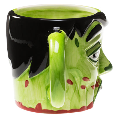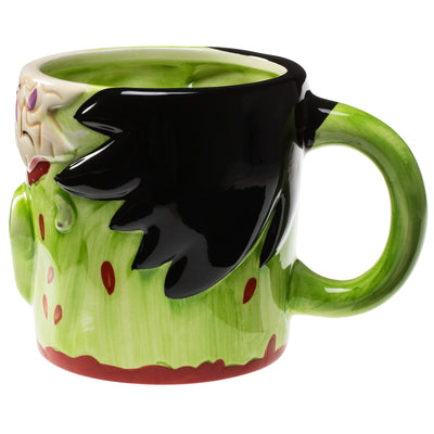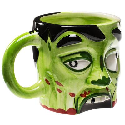 Ahora la cabeza de esta encantadora y verde criatura de cerámica está vacía y necesita ser llenada de nuevo. Ya sea con cerebros... cerebro... baba... o con bebidas como café, té o cacao. ¿No se dice también que algunas bebidas calientes fomentan la actividad cerebral? Bueno, es bueno que la cabeza del zombi ya no tenga uno.