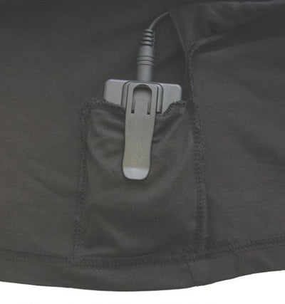 L'effet est réalisé par un accessoire en plastique souple, fixé au t-shirt par une fermeture velcro. L'accessoire est alimenté par une boîte à piles, qui peut être insérée dans une poche cousue à l'intérieur (voir d'autres images).