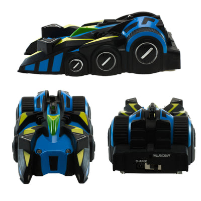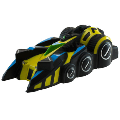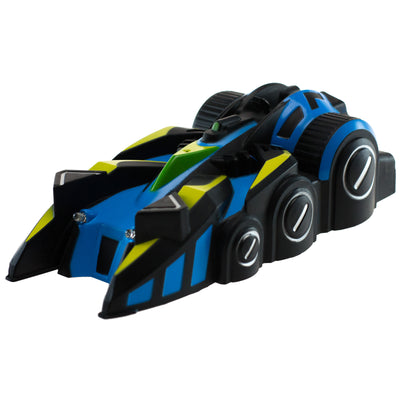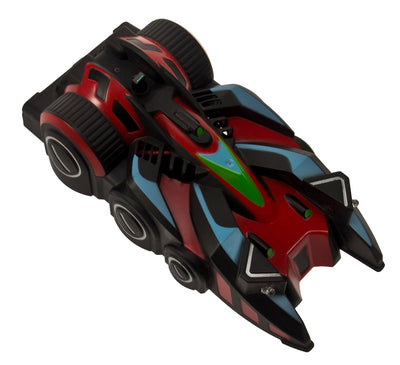 La voiture anti-gravité est équipée d'un dispositif qui produit une dépression sous le véhicule, ce qui lui permet de s'accrocher à toutes les surfaces lisses. Cela permet de faire rouler la voiture, par exemple, sur une fenêtre, un mur ou même au plafond. Le véhicule dispose d'une télécommande infrarouge qui permet de le télécommander et de le recharger facilement. Gadget supplémentaire : la voiture est équipée de 4 petits phares LED qui s'allument automatiquement selon la direction de conduite.
