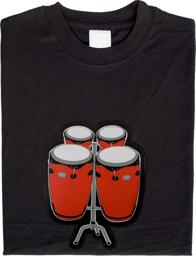 Les tambours représentés sur cette chemise peuvent vraiment être joués - ils émettent des sons de tambour au toucher, de sorte que vous pouvez offrir un petit solo de tambour à tout moment et n'importe où.