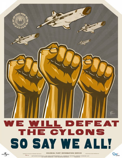 Aide à la lutte contre les Cylons! Montre ton engagement pour le sauvetage de l'humanité en accrochant ces affiches. Ces affiches publiées par le ministère de l'information des Colonies montrent des messages importants qui peuvent aider à recruter et à inspirer d'autres colons.
