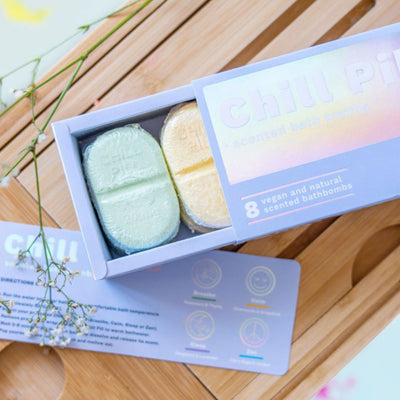 Beaucoup plus inoffensives sont les boules de bain Chill Pill, qui sont destinées uniquement à un usage externe et qui peuvent malgré tout te guérir très efficacement des tensions, des soucis et du stress – sans aucun effet secondaire. Il suffit de jeter une pilule dans l'eau chaude du bain, de la regarder se dissoudre et tu peux déjà te laisser envelopper par l'un des quatre parfums relaxants.