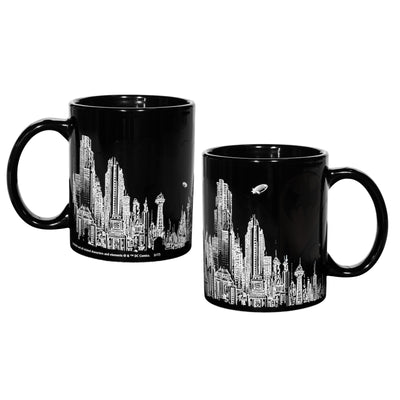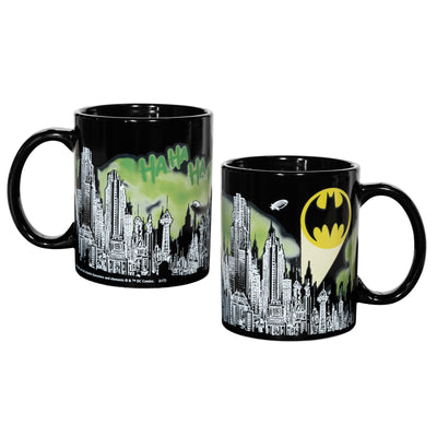 Batman boit bien sûr dans la tasse à effet thermique « DC Comics Gotham City ». Cette tasse montre la skyline de Gotham, mais dès qu'un liquide chaud est versé, la scène change : le Bat-signal s'allume, les rues se remplissent de gaz vert et le rire du Joker résonne dans l'air. Mais renforcé par un café frais, Batman mettra certainement rapidement fin aux plans du Joker !