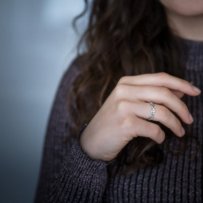 • Bague en argent de haute qualité en forme de double hélice d'ADN