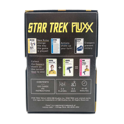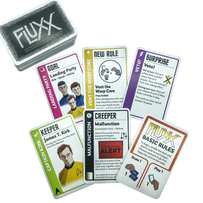 Le jeu de cartes Fluxx - Édition Star Trek (EN) combine ce principe déjanté avec les personnages intergalactiques, les objets et les situations des films et des épisodes télévisés de la légendaire série de science-fiction Star Trek. Que dirait Mr. Spock de tout ce chaos de règles ? ;)