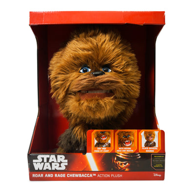 Le Peluche Chewbacca de Star Wars avec son ressemble à son homologue du film et sonne aussi pareil. Grâce aux boutons sur la poitrine de Chewie, tu peux déclencher plusieurs sons de Wookiee, et il peut même bouger sa tête et sa mâchoire. Le Wookiee bavard en peluche fonctionne avec 3 piles AA/LR6, qui sont incluses.