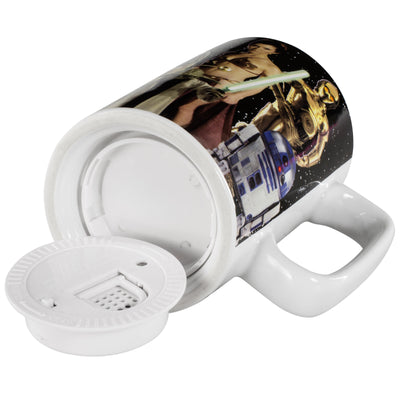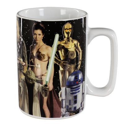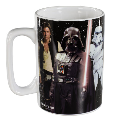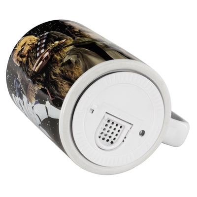 Questa tazza sarebbe già abbastanza epica senza il suono, visto che intorno ad essa puoi vedere Han Solo, Darth Vader, uno Stormtrooper, Chewbacca, la Principessa Leila e C-3PO. Ma il modulo sonoro la rende ancora migliore: non appena la tazza viene sollevata, riproduce uno dei sei suoni di Star Wars e potrai sentire Chewbacca, Yoda, R2-D2, C-3PO o il tipico rumore della spada laser.