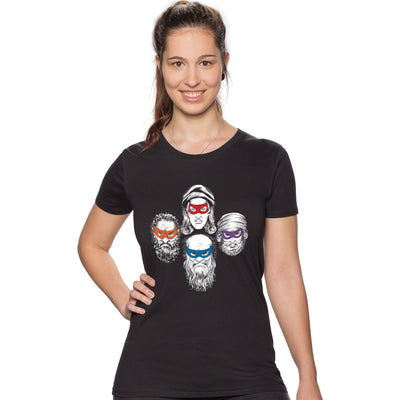 Ok, lo ammettiamo: A parte gli studenti d'arte e gli studiosi di storia, è probabile che nessuno capisca lo scherzo che si trova sul maglietta "Teenage Mutant Ninja Artists ...". Un piccolo consiglio: guarda le bende sui quattro uomini.