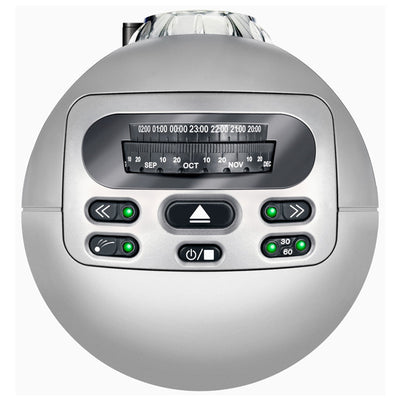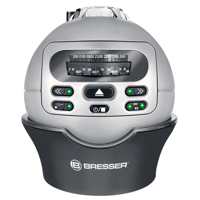 Um das Ganze noch realistischer und lehrreicher zu gestalten, kann über eine Wählscheibe das jeweilige Datum und die Uhrzeit eingestellt werden, so dass dann der zu dem eingestellten Zeitpunkt tatsächlich sichtbare Himmelsausschnitt dargestellt wird (beobachtet von 35° Nördlicher Breite). So kann man z.B. die Sternbilder am echten Himmel suchen gehen und erzielt damit gleich noch einen richtigen Lerneffekt!