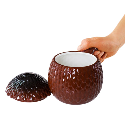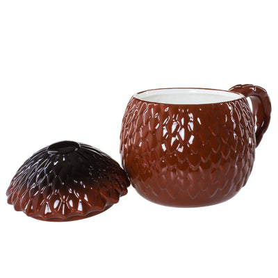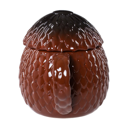 Als je van een vergelijkbaar koninklijk ontbijt wilt genieten, moet je niet genoegen nemen met gewone gouden bekers. Nee, voor jou moet het al een Drakenei-beker zijn! In dit vat, dat is gemaakt van het ei van een reeds uitgebroede draak, kan ongeveer 800 ml vloeistof worden opgeslagen en als het toch wat turbulenter wordt, kun je het ei afsluiten met de meegeleverde deksel. Zo, nu is het alleen nog maar een kwestie van uitvinden wat sterker is: vuur of ijs... ;)