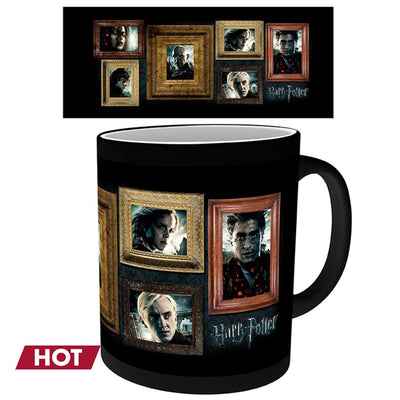 Auf dem Harry Potter Thermo-Effekt-Becher Porträts stehen dir gleich sechs magische Persönlichkeiten zu Diensten. Von welcher ihrer nützlichen Fähigkeiten du Gebrauch machen möchtest, bleibt dir überlassen. Falls sie gerade anderweitig beschäftigt und nicht in ihren Bilderrahmen anwesend sein sollten, gibt es eine einfache Methode um Harry, Ron und Co. anzulocken: Sie alle lieben Heißgetränke! Fülle einfach Kaffee, Tee, heiße Schokolade oder was auch immer dir besonders gut schmeckt in den Becher und schon kehren die Hexen und Zauberer in ihre Porträts zurück.