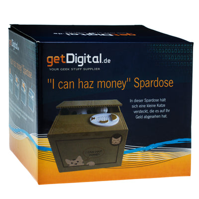 Uiteraard heeft ons kleine katje een kartonnen doos als woonplaats gekozen, hoewel deze doos eigenlijk van kunststof is. Des te veiliger is je geld daarin opgeborgen. ;)