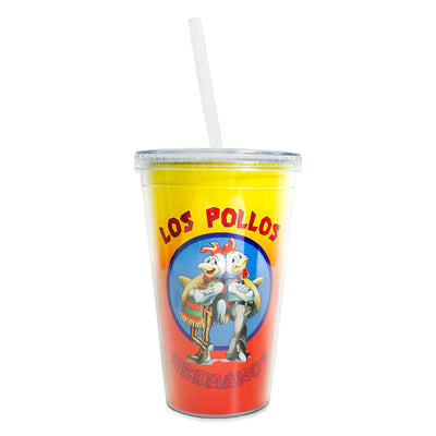 In een van de populairste misdaadseries van de afgelopen decennia omringt een terneergeslagen scheikundeleraar zich met allerlei duistere figuren. Niets is wat het lijkt – ook niet het fastfoodrestaurant Los Pollos Hermanos, dat slechts als dekmantel voor een drugshandel dient. Helaas is het restaurant gesloten, maar we hebben het nog voor elkaar gekregen om deze exclusieve Los Pollos Hermanos Beker voor je te bemachtigen! De grote beker heeft een inhoud van 700 ml en wordt geleverd met een deksel en een rietje. Let op: De beker is alleen bedoeld voor koude dranken!